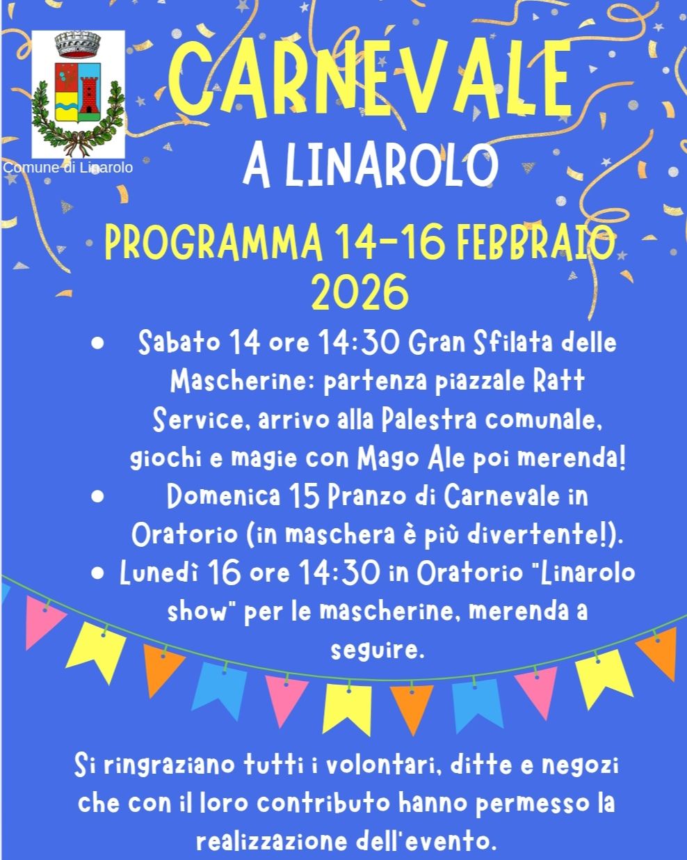 Programma della Festa di Carnevale a Linarolo (vedi volantino allegato):